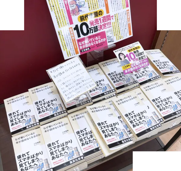 はい。『なぜ働いていると本が読めなくなるのか』というタイトル、そして目次を拝読した瞬間に、めちゃめちゃヒットすると思いました。三宅さんにも「必ず売れる自信があります。新書大賞を目指しましょう!」とお伝えしましたね。本当に凄いものができるぞ、と感じて、興奮し過ぎていたので「この一冊で、三宅さんの人生が変わります」と口走ってしまったような気もします(笑)。その後、Web媒体の「集英社新書プラス」の連載としてスタートさせたのですが、予想通りに反響もかなり大きいものでした。SNS上でも話題になっていましたね。世の中の反応を目の当たりにし、「一冊の新書にする際にはなんとしてでも売りたい」、「発売後一年で10万部は出したい」とは思っていました。実際にはその目論見が、わずか一週間で達成されてしまって……。予想外のスピードでした。