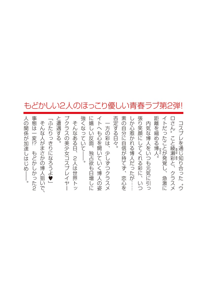 コスプレを通じ知り合った“ウロさん”こと綾瀬彩と、クラスメイトだったことが発覚し、急激に距離を縮める博人。