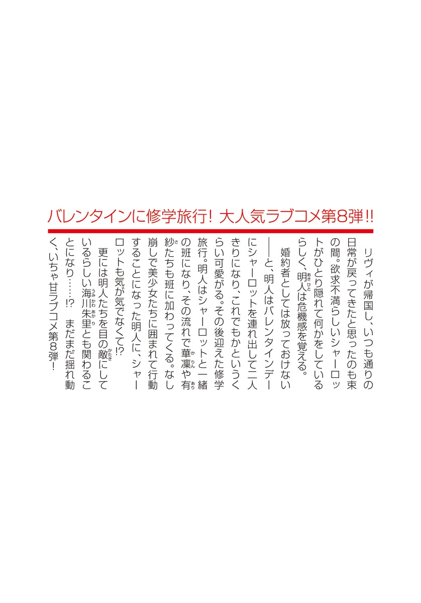 婚約者としては放っておけない――と、明人はバレンタインデーにシャーロットを連れ出して二人きりになり、これでもかというくらい可愛がる。