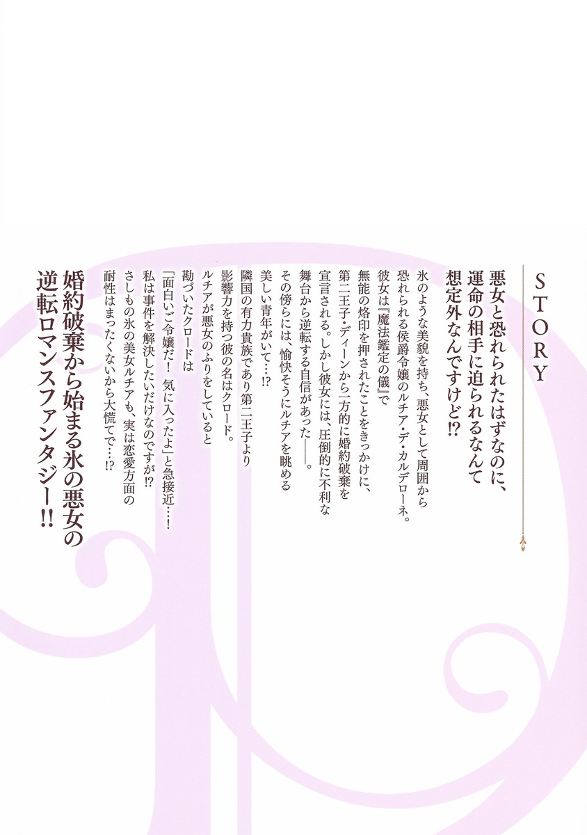 氷のような美貌を持ち、悪女として周囲から恐れられる侯爵令嬢のルチア・デ・カルデローネ。