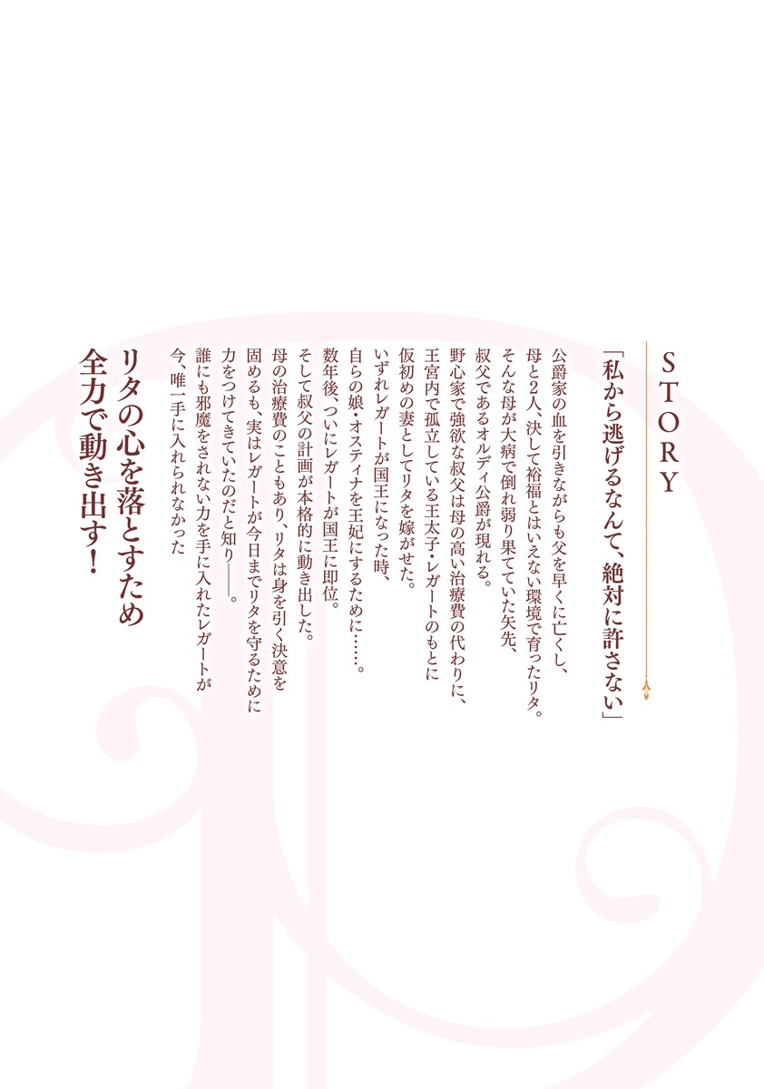 野心家で強欲な叔父は母の高い治療費の代わりに、王宮内で孤立している王太子・レガートのもとに仮初めの妻としてリタを嫁がせた。