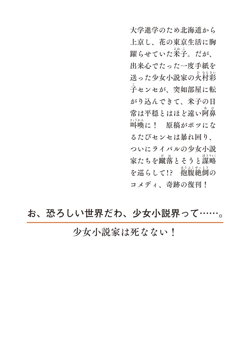 少女小説家の火村彩子センセが転がり込んできたあの日から、米子の毎日は阿鼻叫喚に満ちたものに!