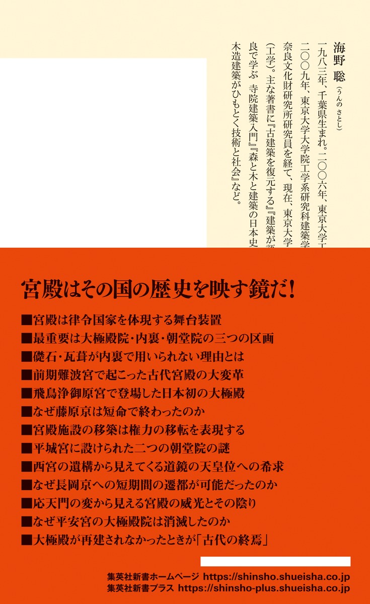 東アジアで国際的緊張が高まる中、唐と日本伝統の手法を組み合わせながら、独自性の高い宮殿を造り上げた。飛鳥宮・藤原宮・平城宮・難波宮・平安宮など各宮殿の空間構成は、どのような意図で造られたのか。