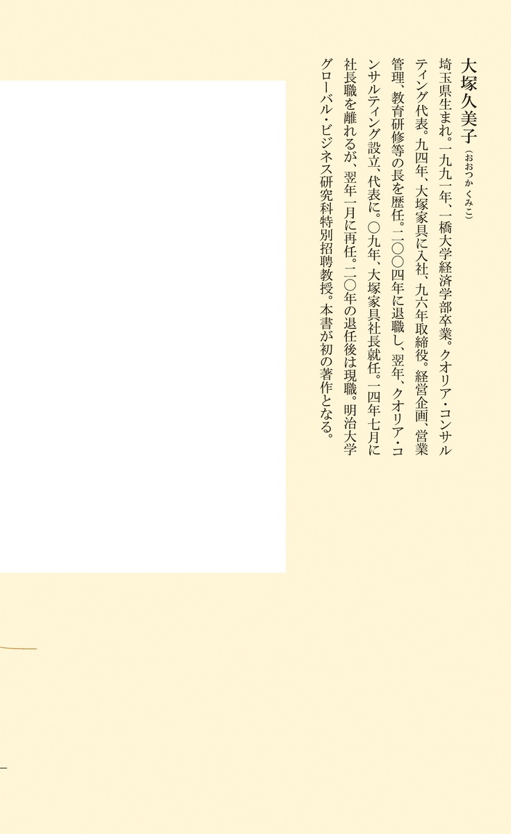 94年、大塚家具に入社、96年取締役。経営企画、営業管理、教育研修等の長を歴任。