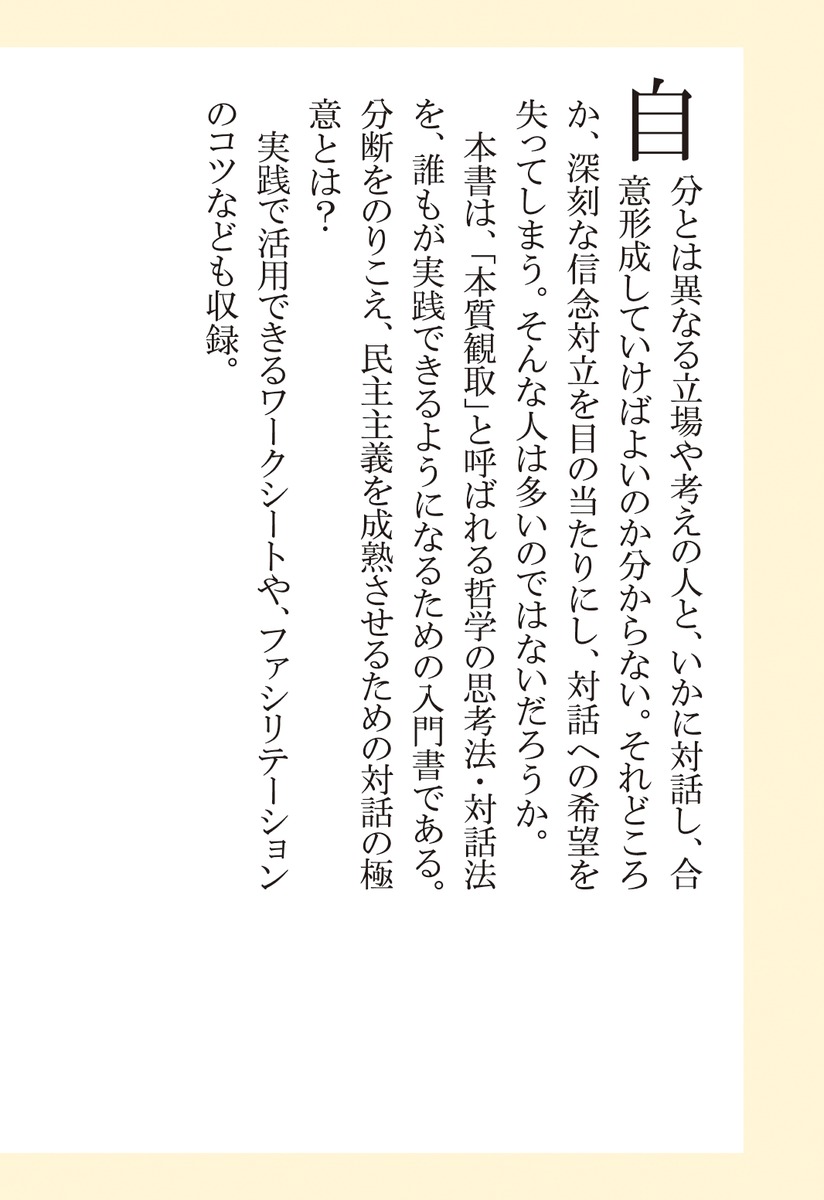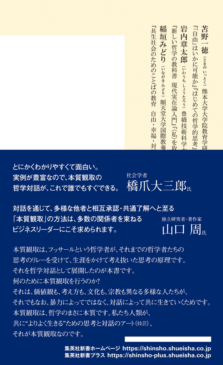 本書は、「本質観取」と呼ばれる哲学の思考法・対話法を、誰もが実践できるようになるための入門書である。