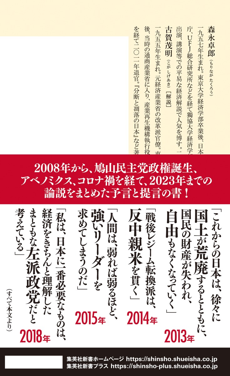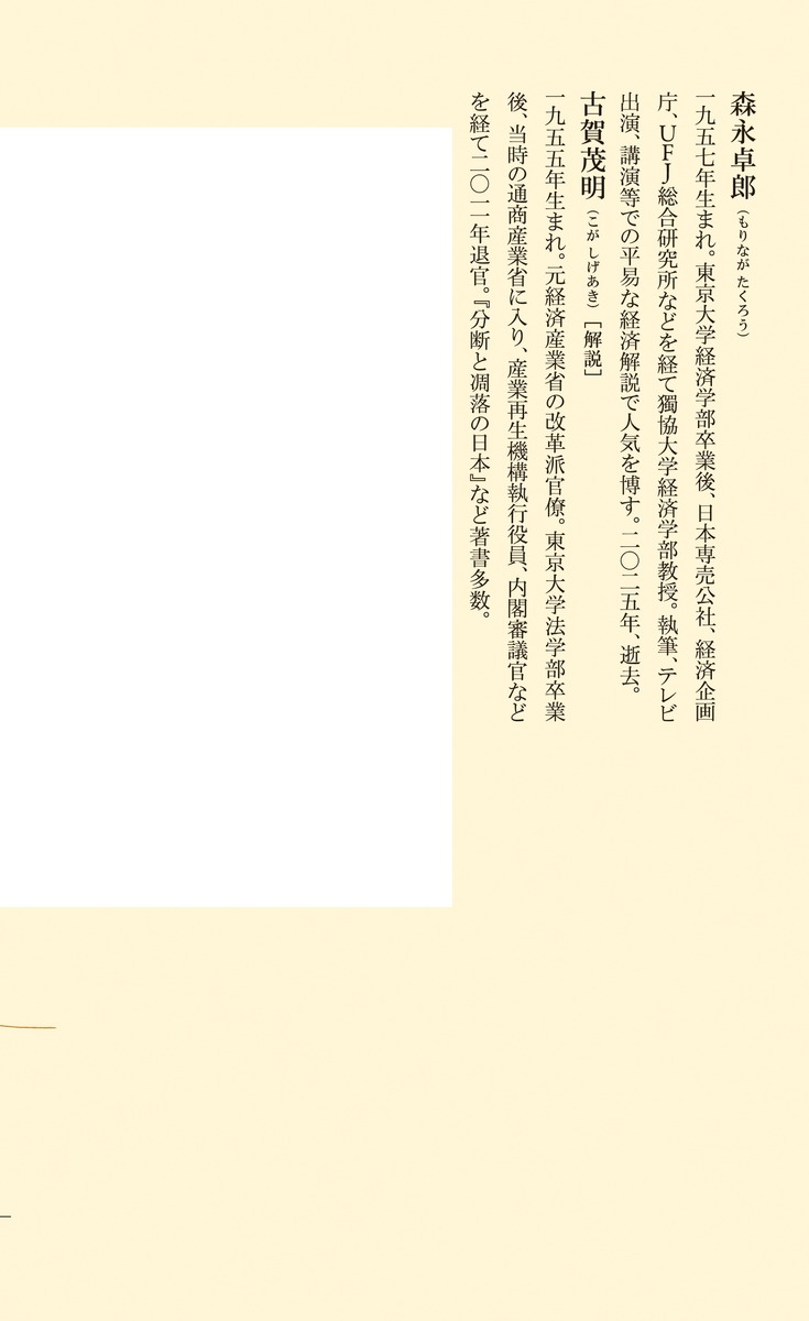 解説は、元経済産業省の改革派官僚で政治経済評論家の古賀茂明が担当。森永が危惧し予言した延長線上にある、日本の現状を分析する。