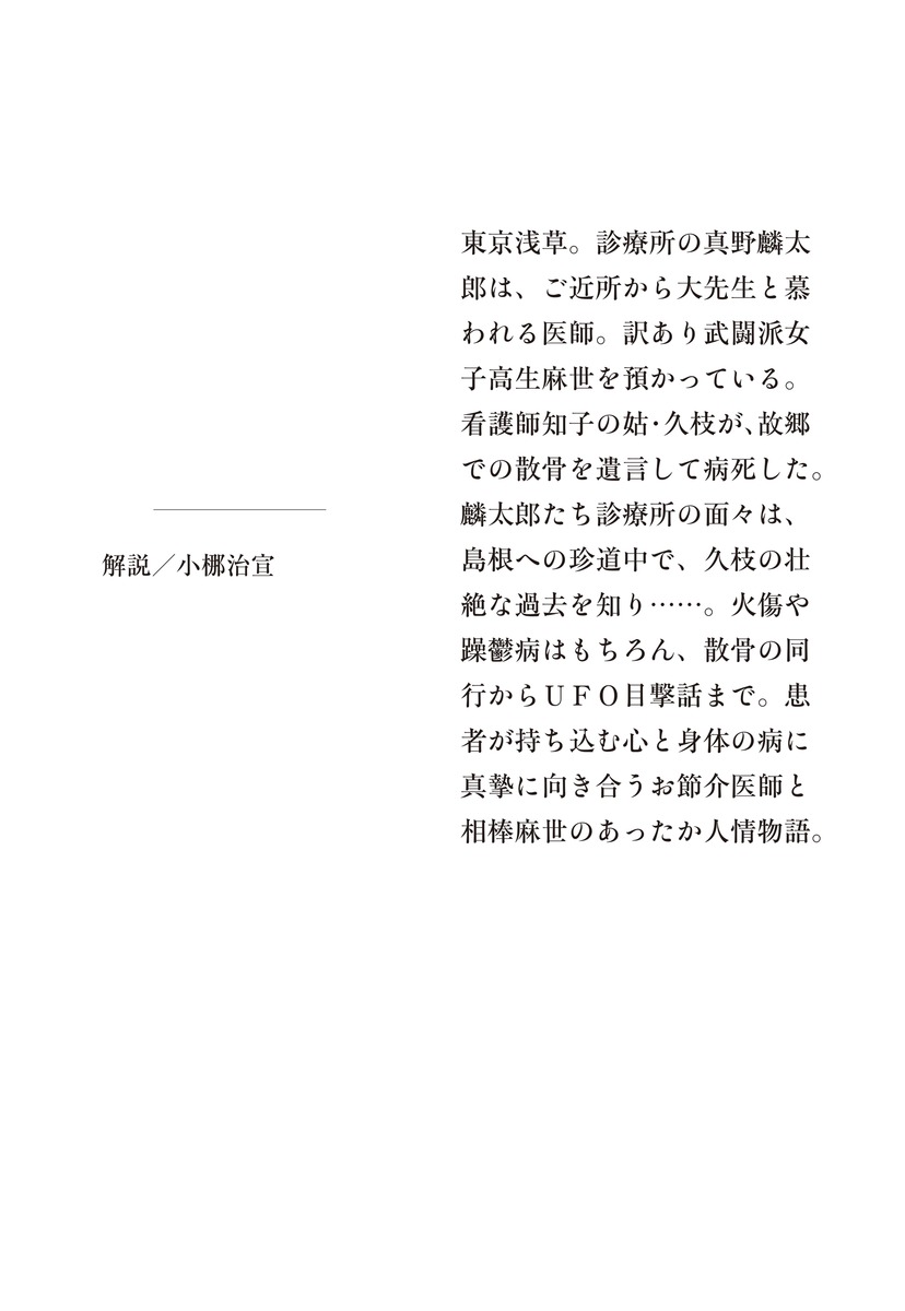 診療所の真野麟太郎は、ご近所から大先生と慕われる医師。