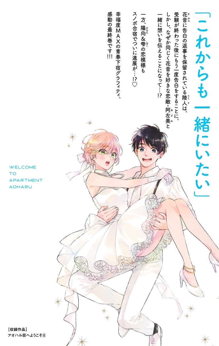 「これからも一緒にいたい」花音に告白の返事を保留されている陸人は、受験が終わった後にもう一度告白をすることに。しかし、なぜか同じく花音を好きな恋敵・阿左美と一緒に想いを伝えることになって…!?一方、陽向&雫の恋模様もスノボ合宿でついに進展が…!?幸福度MAXの青春下宿グラフィティ、感動の最終巻です!!!