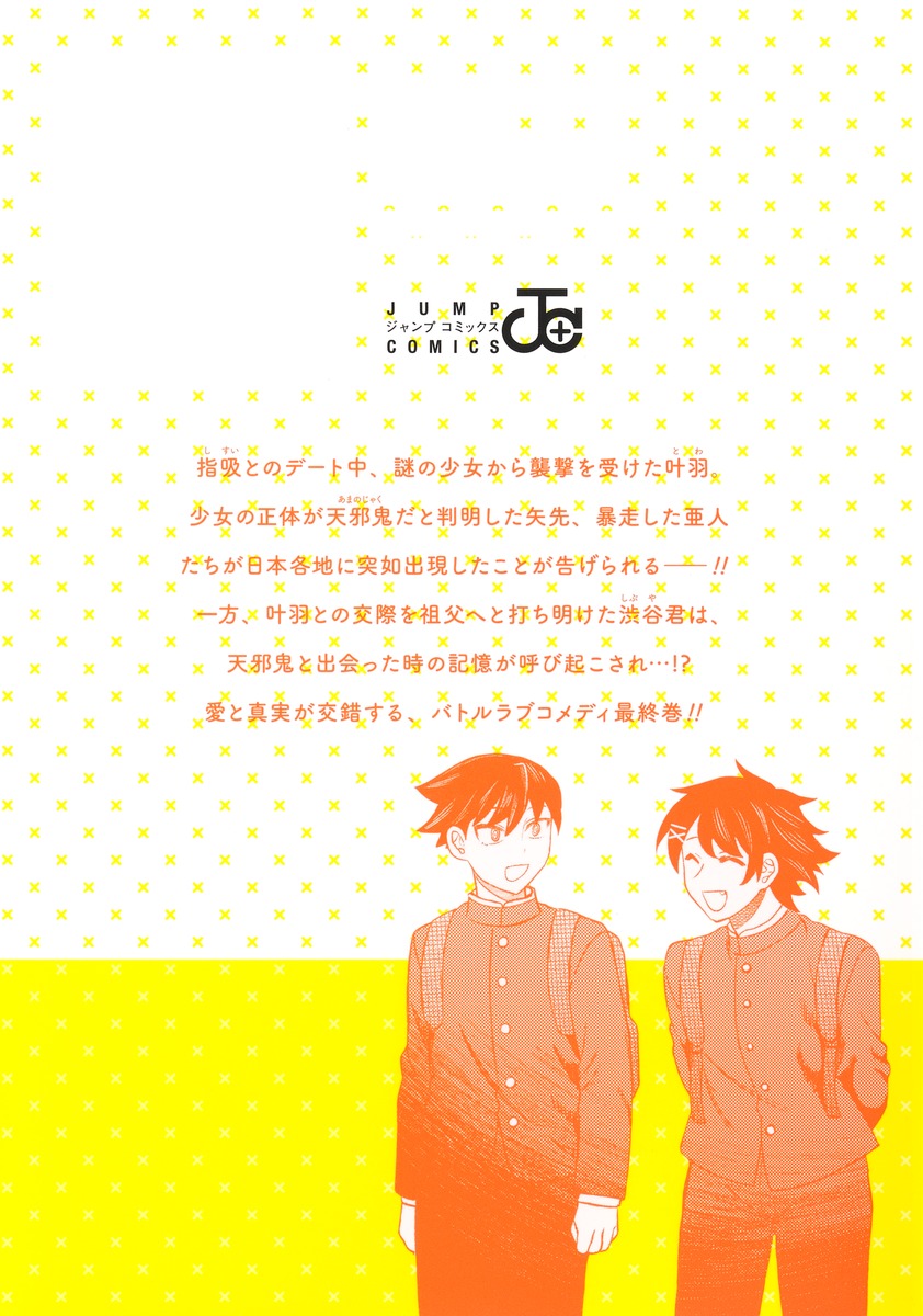 指吸とのデート中、謎の少女から襲撃を受けた叶羽。少女の正体が天邪鬼だと判明した矢先、暴走した亜人たちが日本各地に突如出現したことが告げられる──!! 一方、叶羽との交際を祖父へと打ち明けた渋谷君は、天邪鬼と出会った時の記憶が呼び起こされ…!? 愛と真実が交錯する、バトルラブコメディ最終巻!!