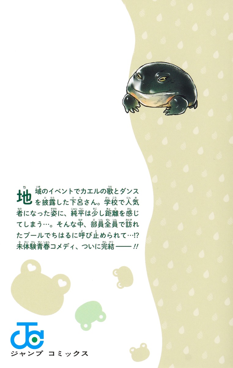 地域のイベントでカエルの歌とダンスを披露した下呂さん。学校で人気者になった姿に、純平は少し距離を感じてしまう…。そんな中、部員全員で訪れたプールでちはるに呼び止められて…!? 未体験青春コメディ、ついに完結──!!