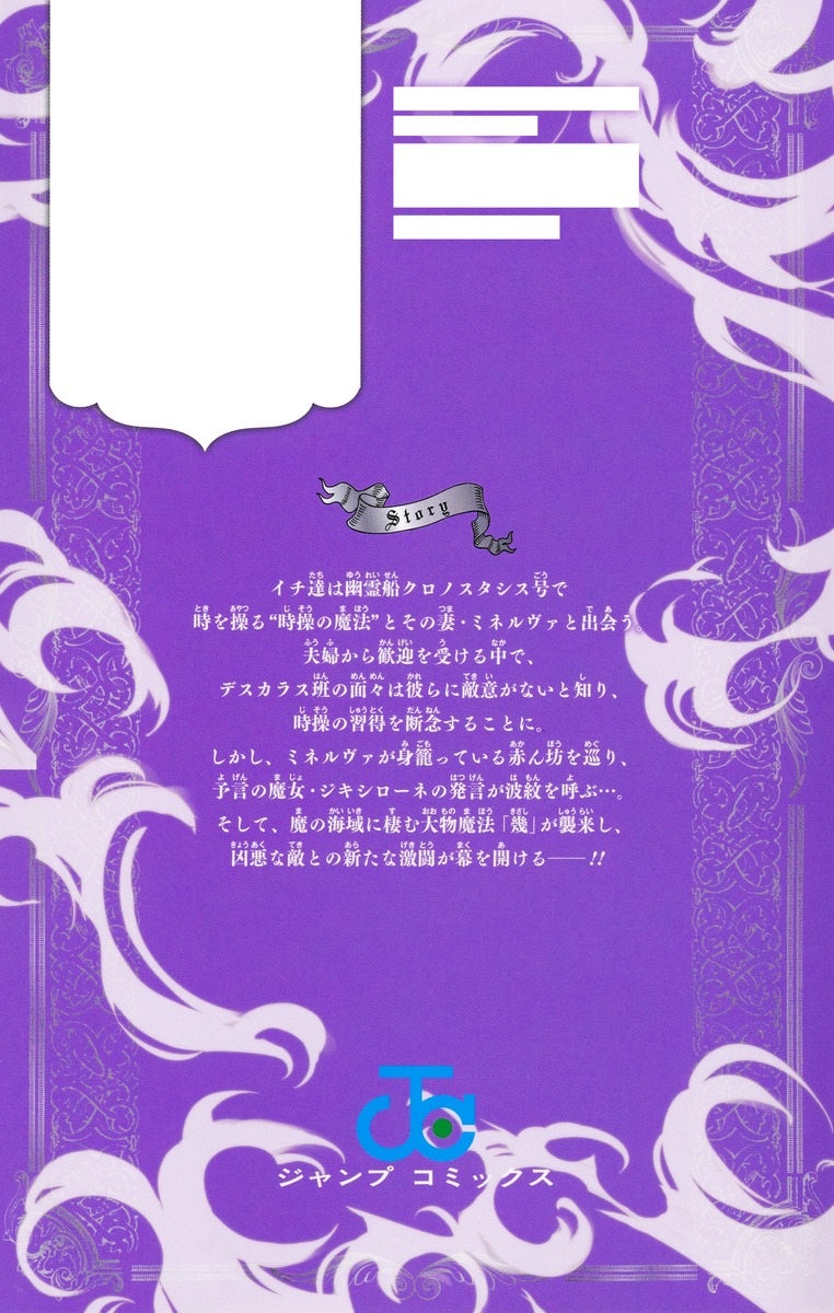 イチ達は幽霊船クロノスタシス号で時を操る“時操の魔法”とその妻・ミネルヴァと出会う。夫婦から歓迎を受ける中で、デスカラス班の面々は彼らに敵意がないと知り、時操の習得を断念することに。しかし、ミネルヴァが身籠っている赤ん坊を巡り、予言の魔女・ジキシローネの発言が波紋を呼ぶ…。そして、魔の海域に棲む大物魔法「幾」が襲来し、凶悪な敵との新たな激闘が幕を開ける──!!