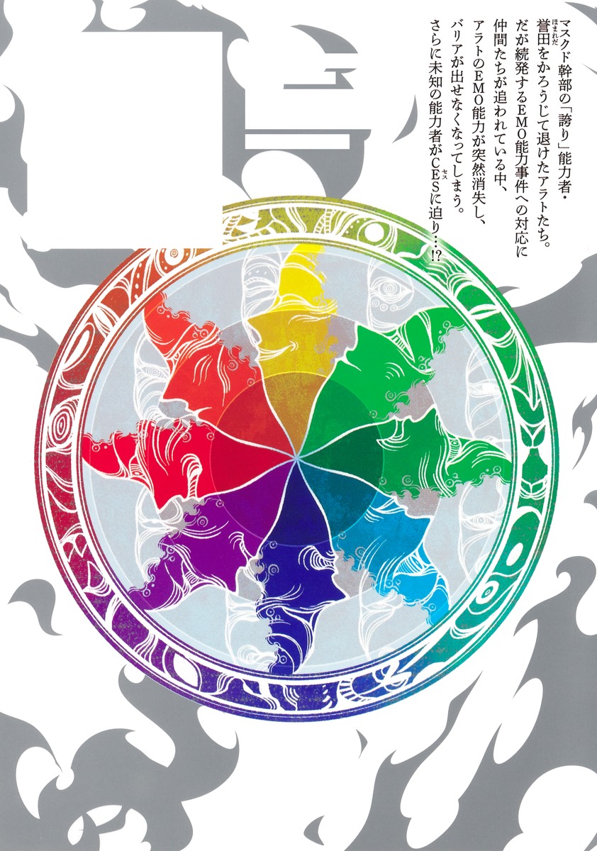 マスクド幹部の「誇り」能力者・誉田をかろうじて退けたアラトたち。だが続発するEMO能力事件への対応に仲間たちが追われている中、アラトのEMO能力が突然消失し、バリアが出せなくなってしまう。さらに未知の能力者がCESに迫り…!?