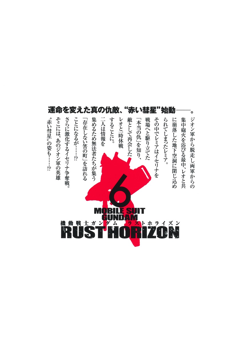 運命を変えた真の仇敵、“赤い彗星”始動──。ジオン軍から脱走し両軍からの集中砲火を浴びる最中、レオと共に崩落した地下空洞に閉じ込められてしまったレミア。その中でレミアはイセリナを戦場へと駆り立てた「本当の仇」を知り、敵として再会したレオと一時休戦することに。二人は情報を集めるため無法者たちが集う「存在しない筈の町」を訪れることになるが……!? さらに激化するイセリナ争奪戦。そこには、あのジオン軍の英雄“赤い彗星”の姿も……!?