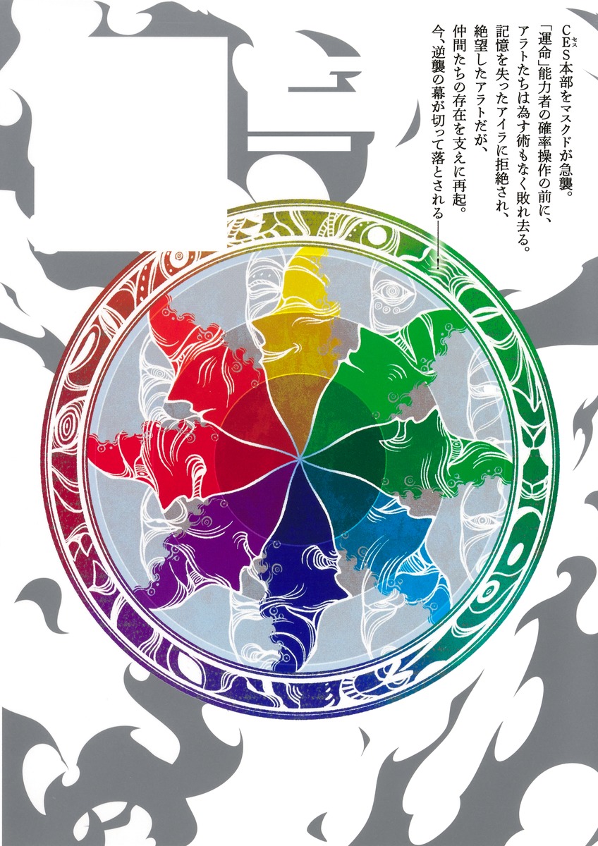 CES本部をマスクドが急襲。「運命」能力者の確率操作の前に、アラトたちは為す術もなく敗れ去る。記憶を失ったアイラに拒絶され、絶望したアラトだが、仲間たちの存在を支えに再起。今、逆襲の幕が切って落とされる──!