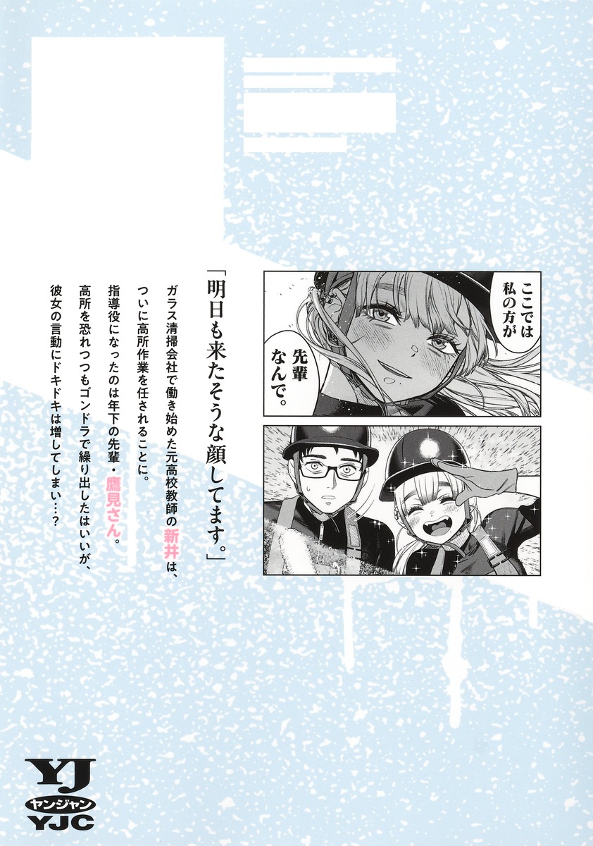 「明日も来たそうな顔してます。」ガラス清掃会社で働き始めた元高校教師の新井は、ついに高所作業を任されることに。指導役になったのは年下の先輩・鷹見さん。高所を恐れつつもゴンドラで繰り出したはいいが、彼女の言動にドキドキは増してしまい…?