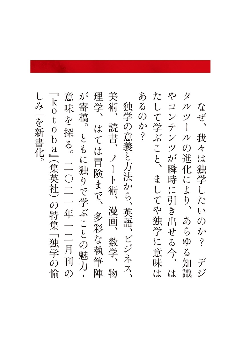 2021年12月刊の雑誌『kotoba』(集英社)の特集「独学の愉しみ」を新書化。
