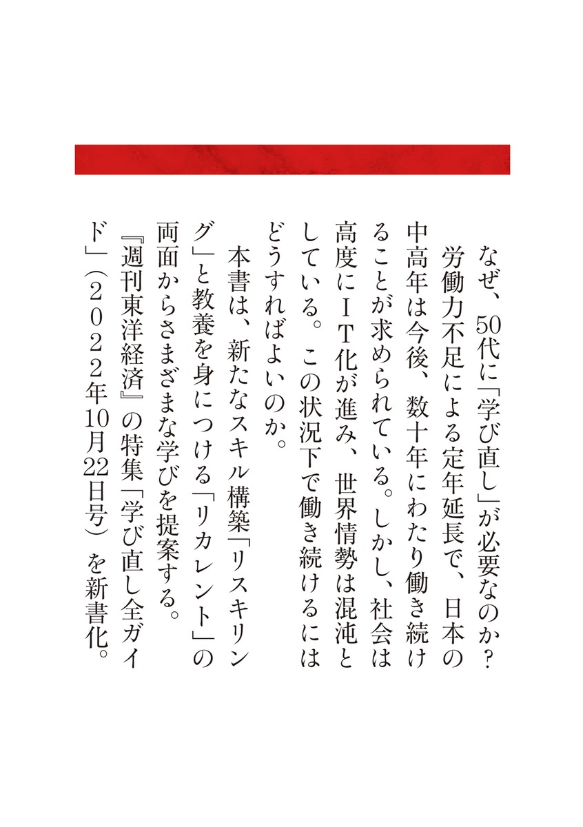 『週刊東洋経済』の特集「学び直し全ガイド」(2022年10月22日号)を新書化。