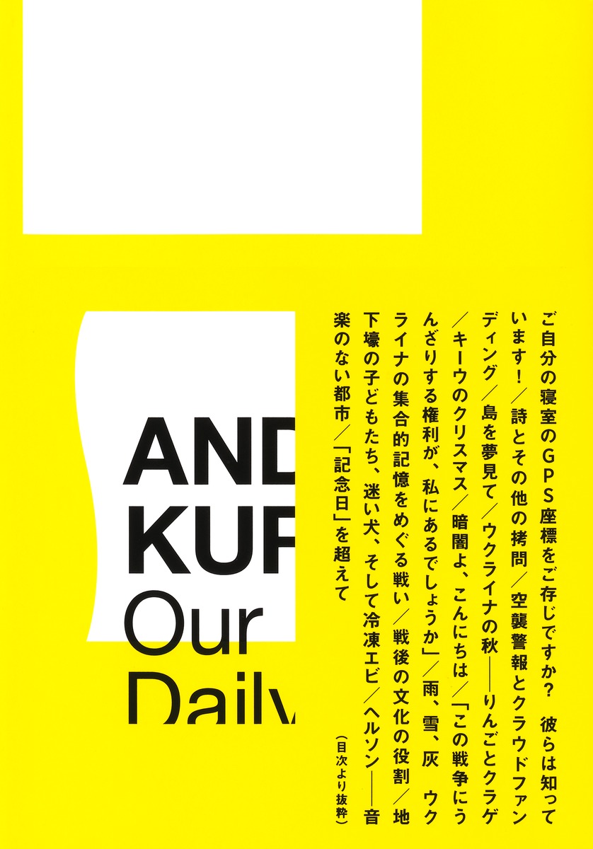 この間、ウクライナとロシアは激しい戦闘を続け、やがて膠着常態に入った。著者のクルコフは、終わらない戦争を悲しみながら、戦争後のウクライナの未来と平和への希望、文化的アイデンティティの維持、ウクライナ人の胆力についての考察でこの日記を締めくくる。ときに鋭い風刺で、ときに悲劇的に、ときにユーモラスに綴られた、現代ウクライナの貴重な記録文学。戦時下のウクライナを記録したドキュメンタリー『侵略日記』の続編。ロシア文学者・沼野恭子氏による解説「ウクライナの銃後を生きる」を収録。