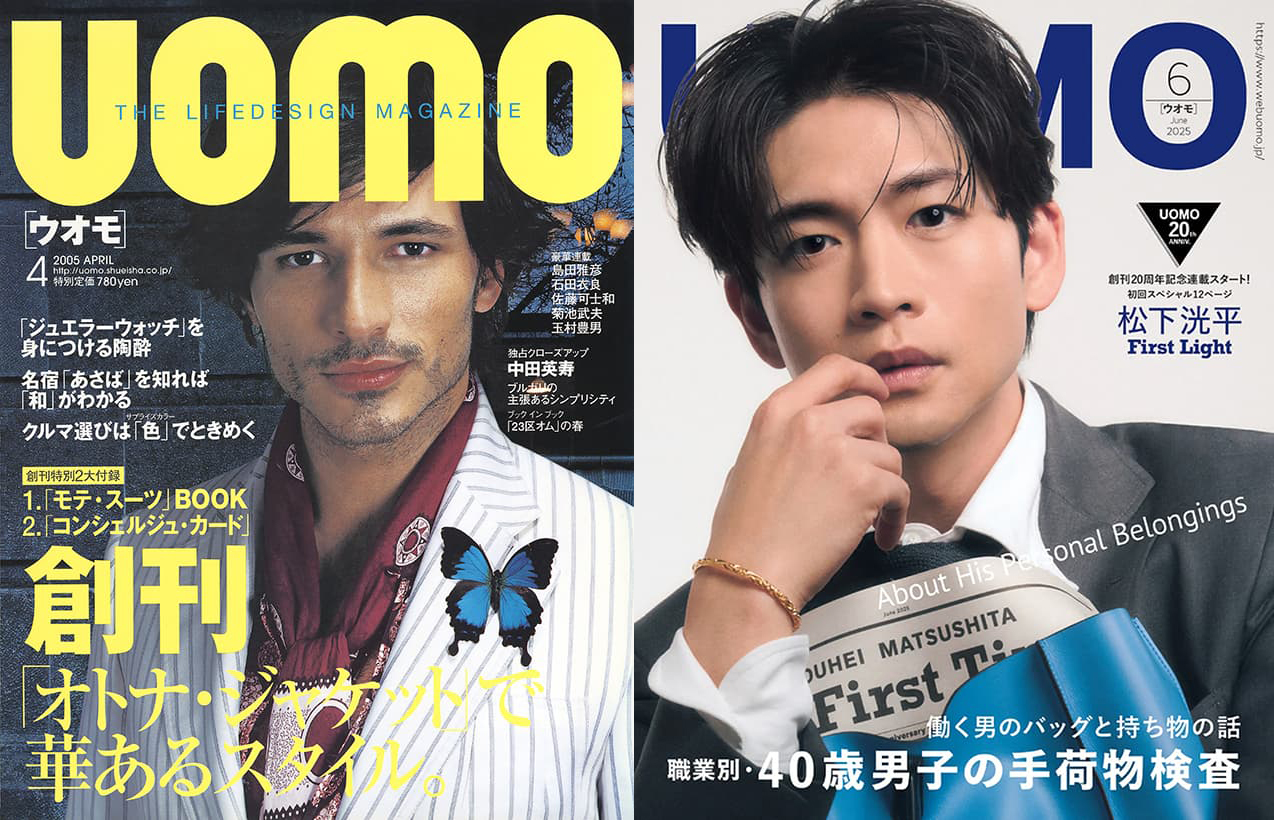 「おしゃれな大人の着てる服、欲しいモノ」をコンセプトに、30~40代男性向けに品のいいカジュアルを提案している「UOMO」は、2025年2月に創刊20周年を迎えました。モノの本質を知るファッション好きをターゲットにした基本姿勢を大切にしながら、その誌面づくりは時代によって柔軟に変化してきました。