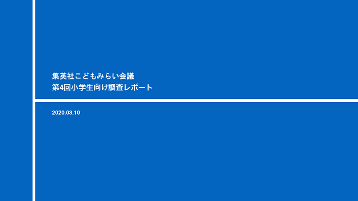 こどもの読者、特に小学校中学年〜高学年を中心にした読者研究、世代研究を実施しています。集英社発行媒体において定期的に行われるこども読者のアンケート、より広い範囲の小学生を対象とした実態調査を行い、分析結果をレポートにまとめ、社内に共有しています。