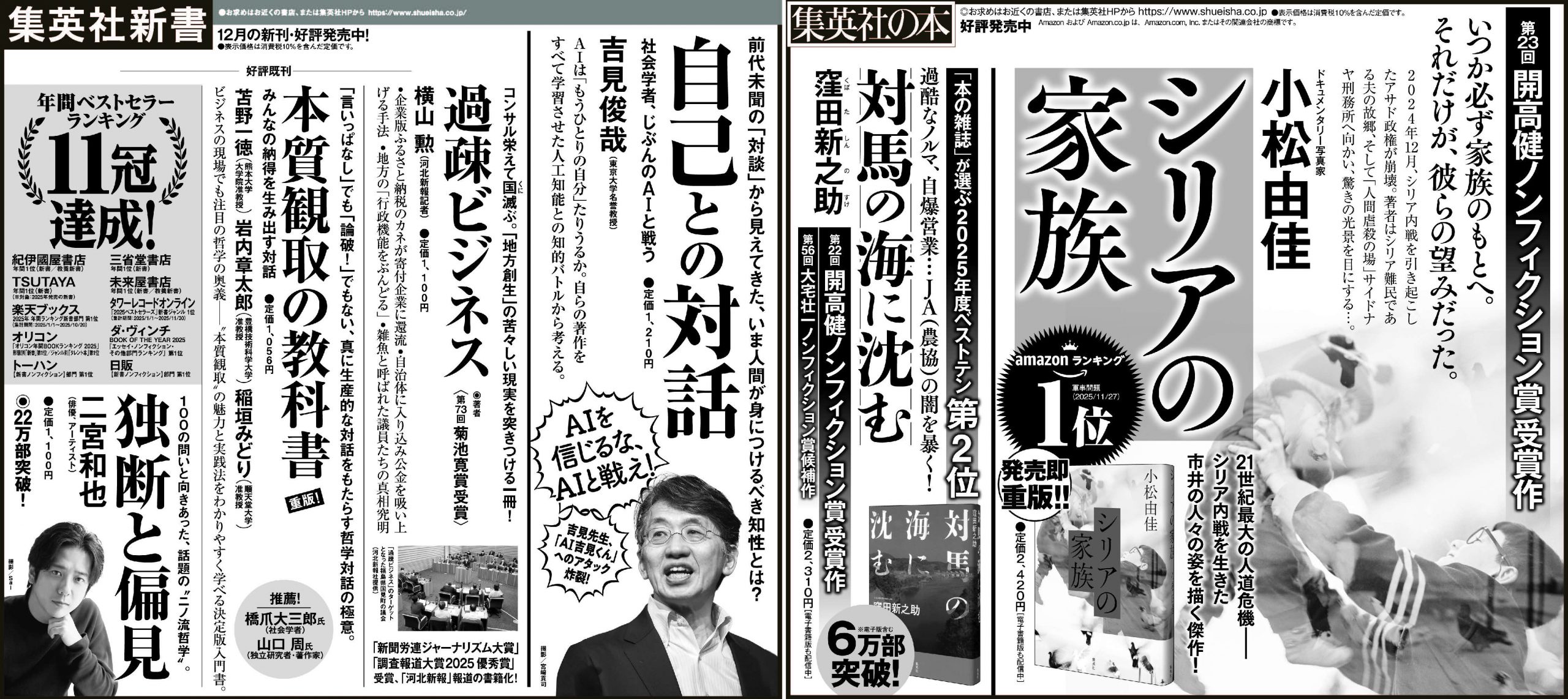 2025/12/19 朝日新聞・読売新聞・聖教新聞